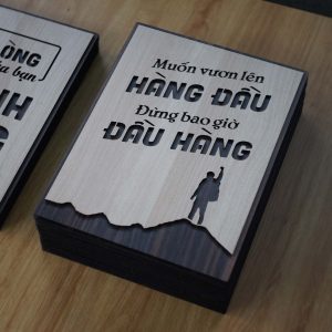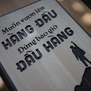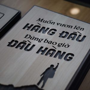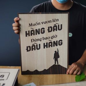 Tranh Slogan hay cho công ty TBIG101 nội dung “Muốn vươn lên hàng đầu đừng bao giờ đầu hàng” là câu nói tạo động lực để bạn không bao giờ bỏ cuộc trước những khó khăn trong công việc sự nghiệp và cuộc sống. Slogan Muốn vươn lên hàng đầu đừng bao giờ đầu hàng cũng là câu nói được nhiều bạn trẻ hay sử dụng để động viên, truyền cảm hứng cho nhau mỗi khi cảm thấy nhàm chán. Tranh Slogan hay cho công ty TBIG101 bằng gỗ mang đến sự mới mẻ trong không gian trang trí nội thất trong nhà bạn.