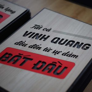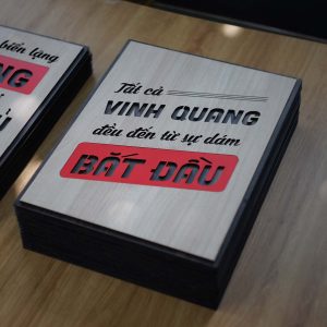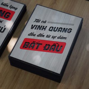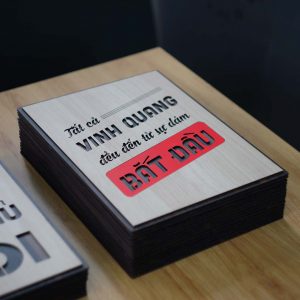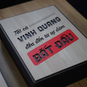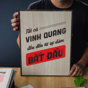 Tranh trang trí TBIG111 nội dung “Tất cả vinh quang đều đến từ sự dám bắt đầu” là lời cổ động cực mạnh để bạn có thể bắt đầu thực hiện ngay những dự kiến của mình những vẫn còn chần chừ chưa dám làm. Mẫu tranh treo tường slogan tạo động lực bằng gỗ khắc laser nội dung cổ động truyền cảm hứng trên nền gỗ 2 lớp là lựa chọn trang trí cao cấp sang trọng cho bức tường của bạn.