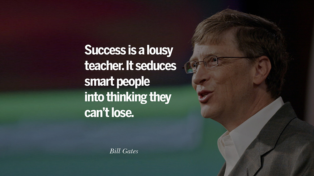 “Success is a lousy teacher. It seduces smart people into thinking they can’t lose”.