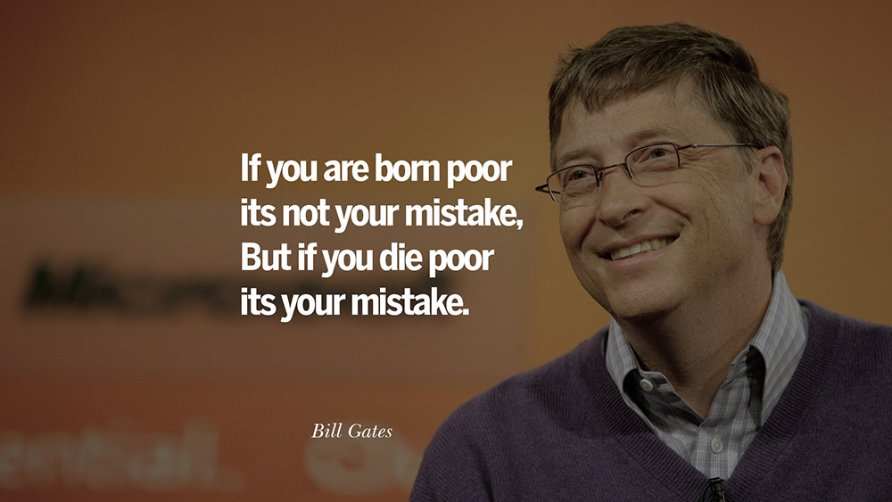 “If you are born poor it’s not your mistake, But if you die poor it’s your mistake”.
